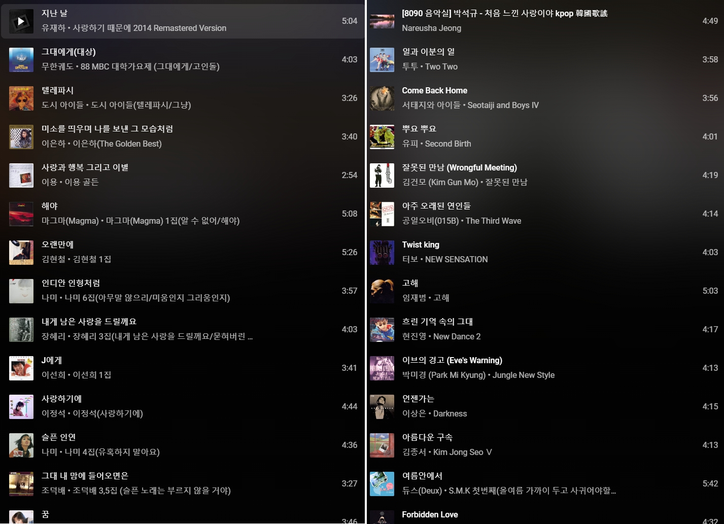 아직 나의 플레이리스트들이 완성된 것은 아니고, 그때 그때 기억나는 노래들을 수집 중이지만, 나는 오늘 그렇게 그 노래들을 들으며 나의 낭만의 시대로 돌아가본다.