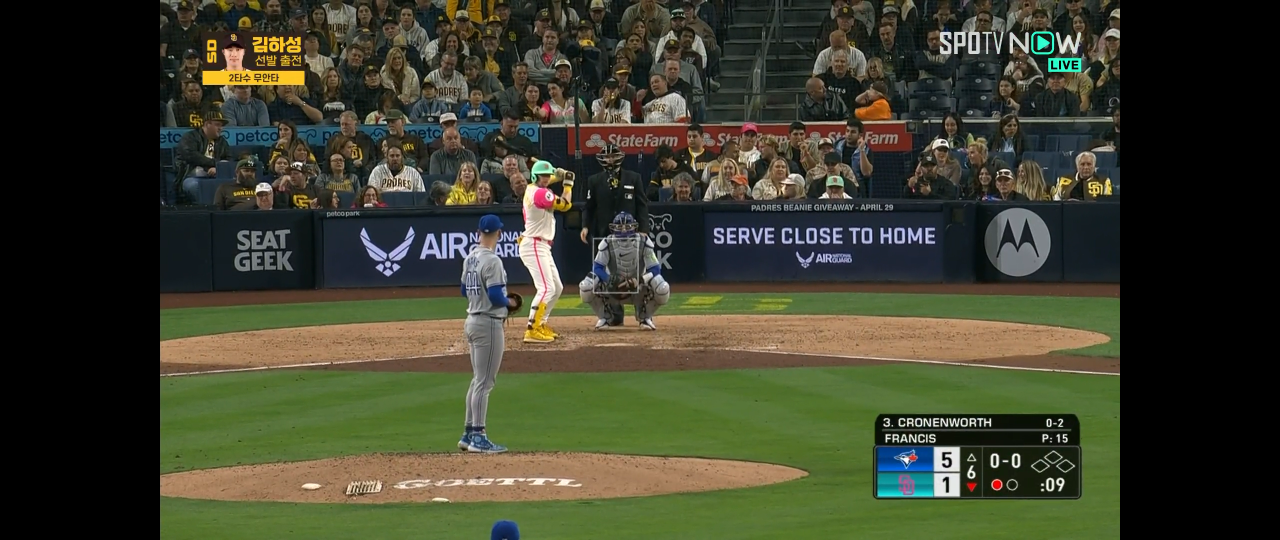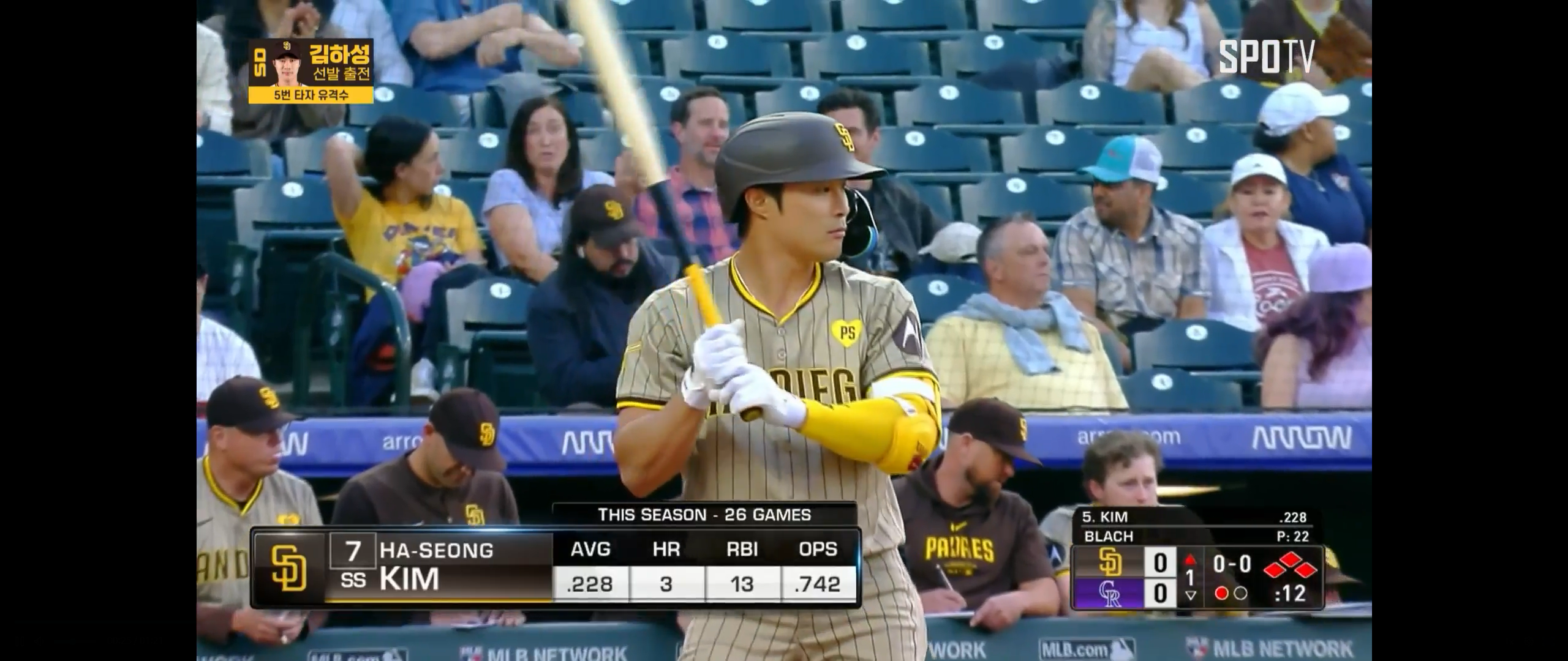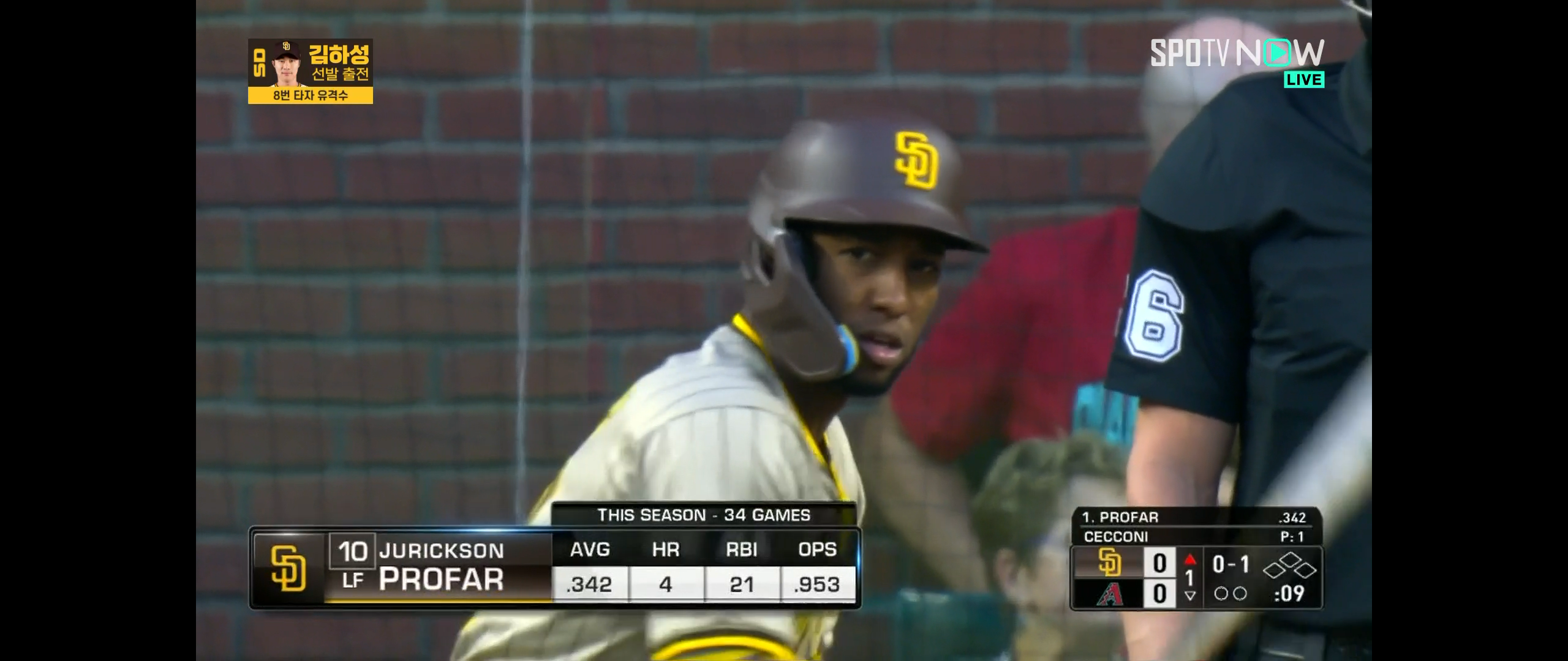 오랫만에 MLB 라이브를 본다. NL 서부지구팀간의 경기이다보니 편안한 시간대에 들어 왔다. 최근 압도적인 LAD 에 비하여, 기세가 죽어 있는 두 팀간의 경기이다. 그 와중에 SD 가 사정이 좀 더 나은 것 같다. 함 즐겨보자구!! 갑자기 고우석이 Miami 로 트레이드 되었다. MLB 데뷔도 하기 전에 저니맨이 되는 것인가? Miami에서는 Luis Arraez 를 SD로 보냈다. 2루수 즉 내야수인데, 이것이 의미하는 바는 SD 내야수에 대폭적인 변화 혹은 경쟁이 생기겠다는 의미다. 올 시즌 SD는 김하성을 유격수로 쓰기 위해 Xander Bogaerts 를 2루로 이동시켰는데... 이렇게 되면 시즌 후 FA가 될 김하성이 다른 팀과의 트레이드 대상이 될 것 같다. 과연 여전히 시즌 초반 레이스 중..